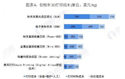 原材料是金屬3D 打印的制造成本中占比最大的一部分。DigitalAlloys以鈦粉末(6Al-4V)為例,對于SLM、EBM、DED、Binder Jetting、Digital Alloys等主流的金屬3D打印工藝的制備成本進行統計,發現每千克產品的打印成本中原材料成本是占比最高的(除SLM工藝外),同時隨著成型精度、成型質量、打印時間的增長,設備、維護和人工的占比逐步提升,在打印質量最好的SLM工藝中,設備、維護和人工成本是占比最高的,其中也有專利保護因素,但是在打印效率越來越高、規模效應越來越明顯的趨勢下,材料成本占比將進一步提升。
