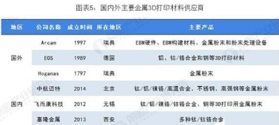 近年來,隨著3D打印商業化應用持續推廣,打印材料的重要性愈發凸顯。目前國內的基礎3D打印材料已基本滿足國產設備的增材制造需要,但高性能金屬粉末耗材依然依賴進口,國產材料在純凈度、顆粒度、均勻度、球化度、含氧量等對打印成品性能影響較大的原料指標方面相比國外仍存在較大的差距。德國的EOS、TLS,瑞典的Arcam、Hoganas、Sandvik,比利時的Solvay等具備較強實力的金屬3D打印耗材供應商多數成立于2000年以前,在粉末冶金或金屬打印設備領域有較強的技術積淀。國內目前能提供高質量金屬粉末的公司包括中航邁特、飛而康、塞隆金屬、西安歐中、鉑力特以及新進入的鋼研高納、頂立科技等,這些公司或相關業務多數成立于2010年以后,近年來發展較快。